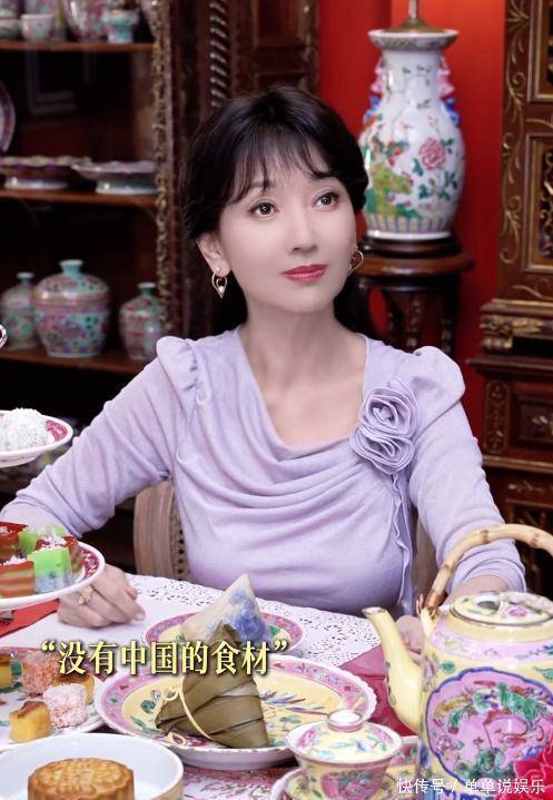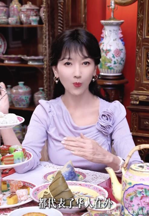 而且她一根白头发都没有,乌黑的秀发,说起话来也甜甜的,宛如少女一般,仿佛又回到了我们小时候在大荧幕上看到她的样子。视频里她给我们介绍长得像粽子的食物,说是我们华人出国时太想念家乡,用当地的食材制作的。